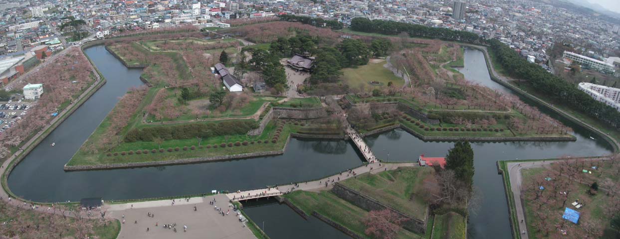 改めて五稜郭を上から見ると、星形をしていることがよく解ります。ちなみに、この五稜郭はコンパクトデジカメのパノラマ機能を使って、撮影をしました。