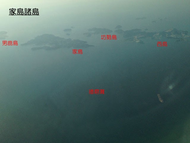播磨灘上空を進んでいくと、家島諸島が見えてきます。家島諸島は姫路市に属し、家島、男鹿島、坊勢島及び西島の大きな4つの島をはじめ、多くの島で構成されています。飛行機は岡山空港への着陸のため、降下し始めました。